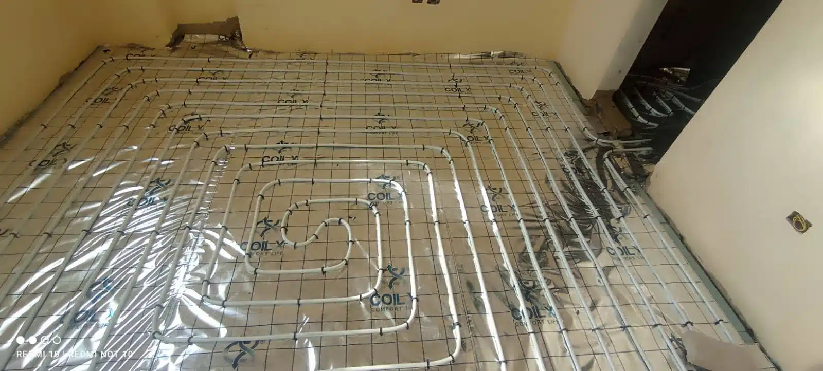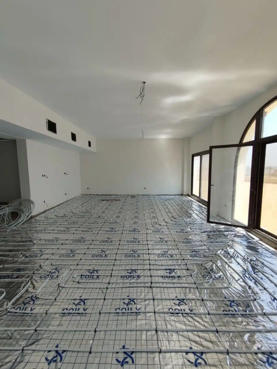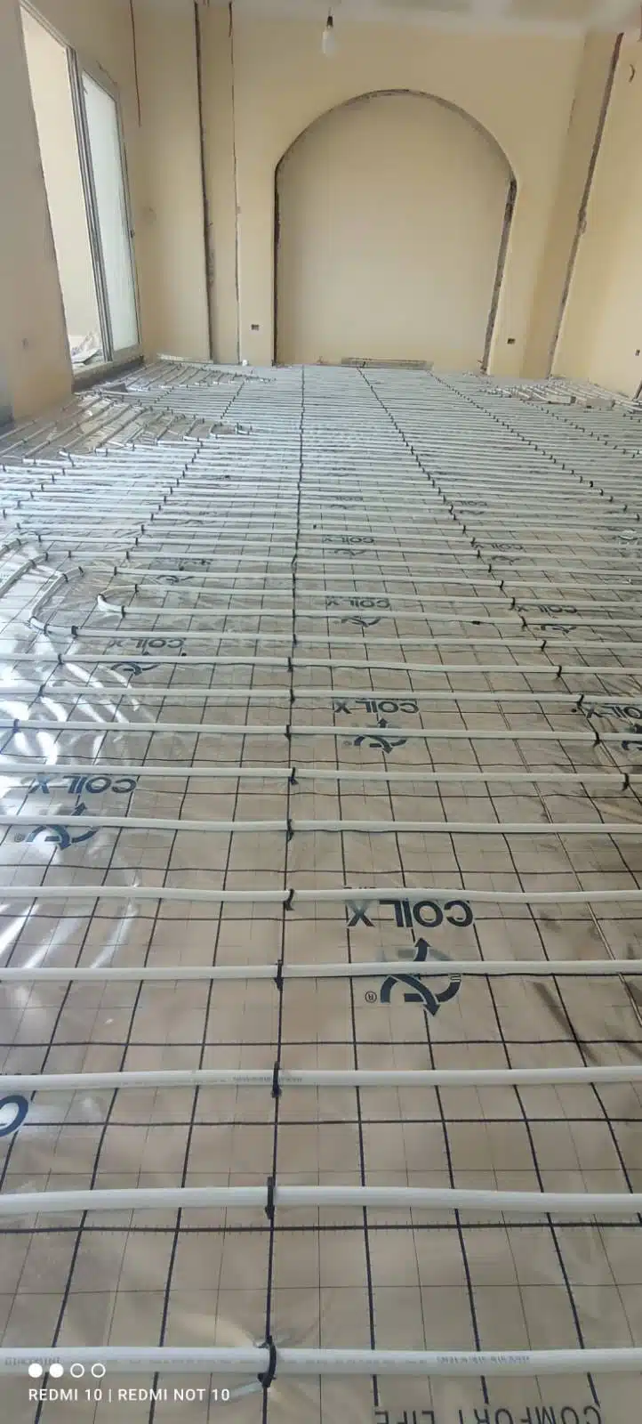 فريقنا الفني يتواصل مع مكتب التشطيبات لمعرفة نوع الأرضية المستخدمة (سواء سيراميك، بورسلين، باركيه… إلخ)، وبناءً على ذلك نحدد توزيع المواسير ودرجة الحرارة المناسبة، لضمان أفضل أداء والحفاظ على سلامة الأرضية تمامًا.