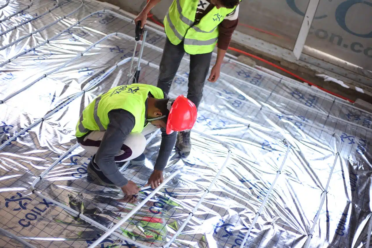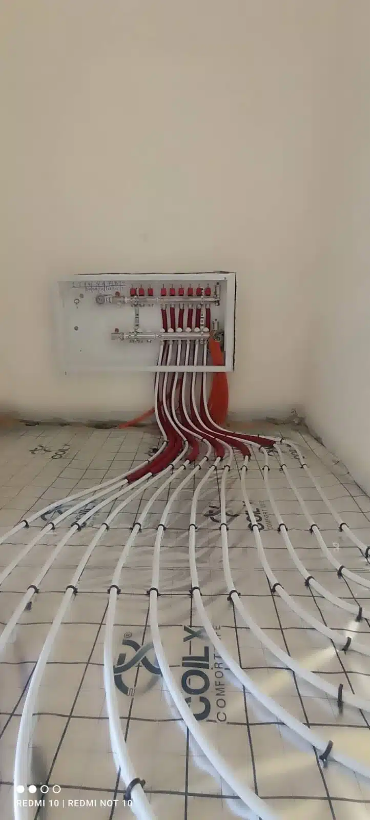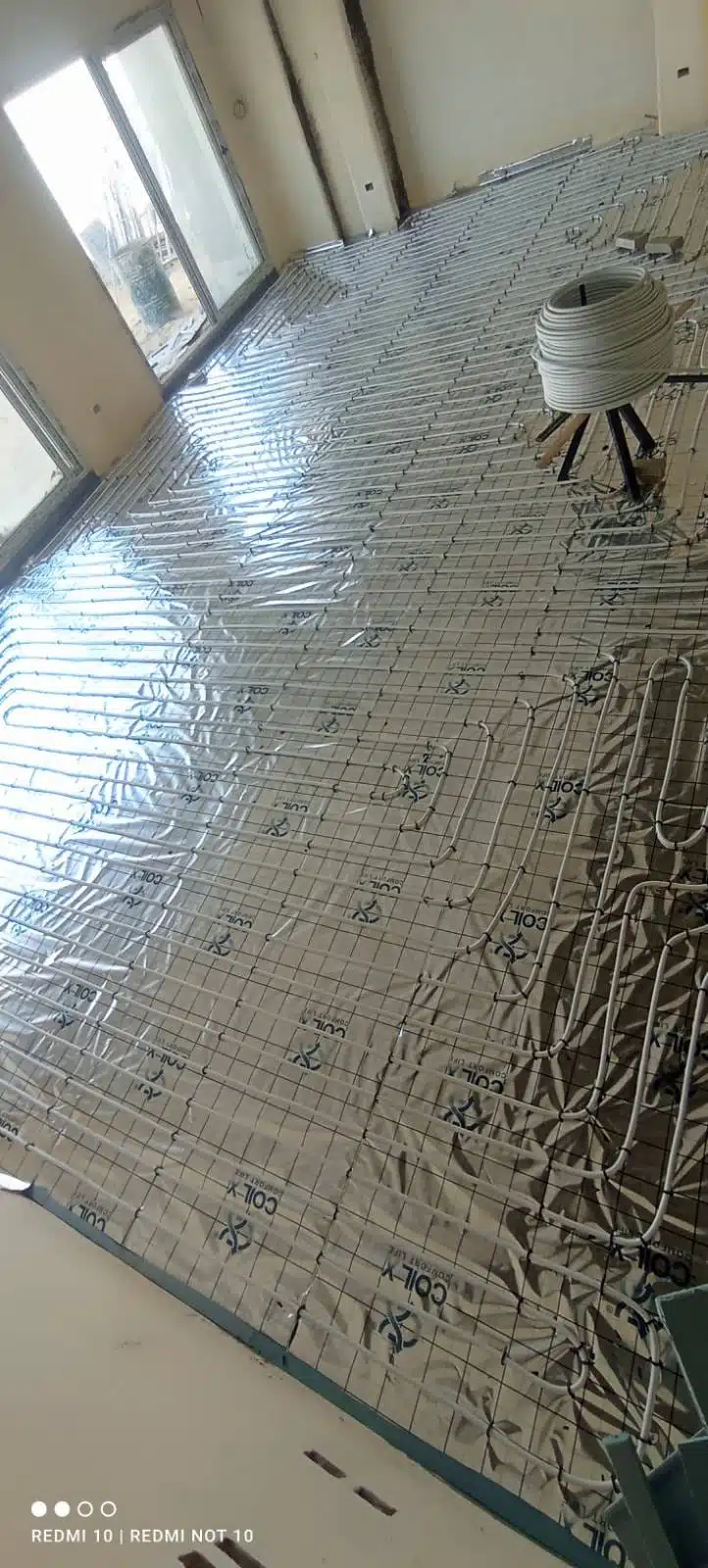 فريقنا الفني يتواصل مع مكتب التشطيبات لمعرفة نوع الأرضية المستخدمة (سواء سيراميك، بورسلين، باركيه… إلخ)، وبناءً على ذلك نحدد توزيع المواسير ودرجة الحرارة المناسبة، لضمان أفضل أداء والحفاظ على سلامة الأرضية تمامًا.