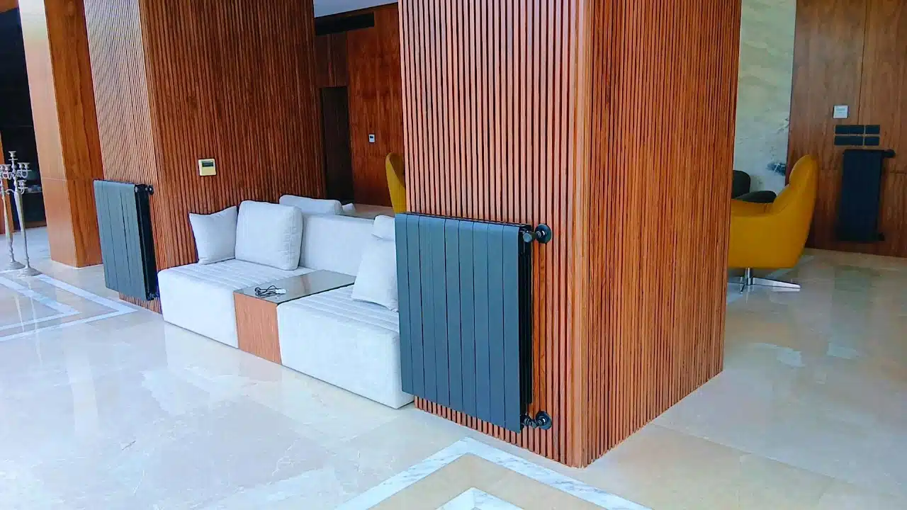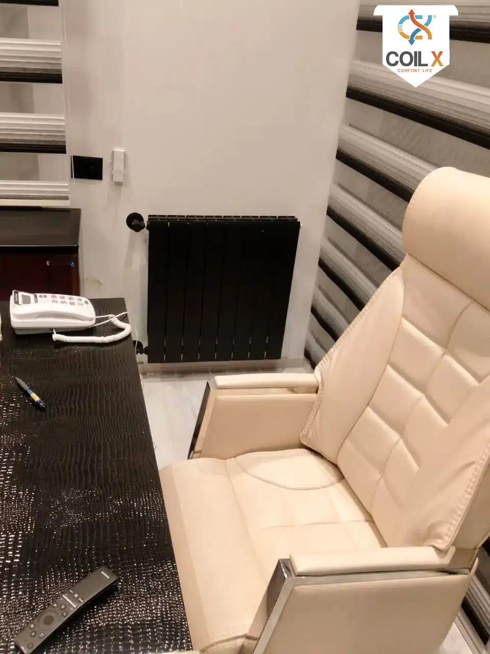 الدفايات الحائطية تعمل بالمياه الساخنة التي تمر بداخلها، وليست بالكهرباء.